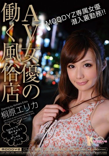 這支作品看說明是蠻有意思的:拍片拍到一半的桐原エリカ(桐原Erika)突然被宣布停止工作,然後被丟掉風俗界開始「賣」了起來,接下來就是各種風俗的玩法都玩過一遍,一方面展現她的好身材、一方面則是讓大家看看她的性愛技巧真的已經是個完全體了;不過這種風俗的玩法在一般AV界已經不稀奇了,真正稀奇的是 Moodyz替她照的這張封面: