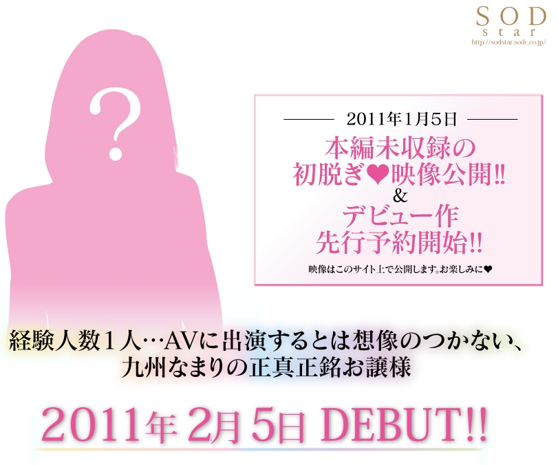 這也是繼ほしのあすか(星野飛鳥)、Sarah(莎拉)以及やまぐちりこ(山口里子)之後SOD連續4個月有新血注入;照慣例,向來擅長行銷的SOD集團是先釋放出消息以及女優的輪廓,長什麼模樣、身材的火辣程度完全看不到,就是要吊影迷胃口、在明年1月5日的時候持續鎖定SOD網站公布女優外型,看看夠不夠吸引人。